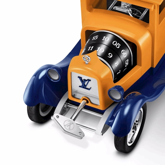 这款台钟复刻了20世纪初路易威登标志性的雪铁龙B10厢式货车造型——当年这些车辆曾穿梭在巴黎街头,专门用来运载LV标志性的硬箱。