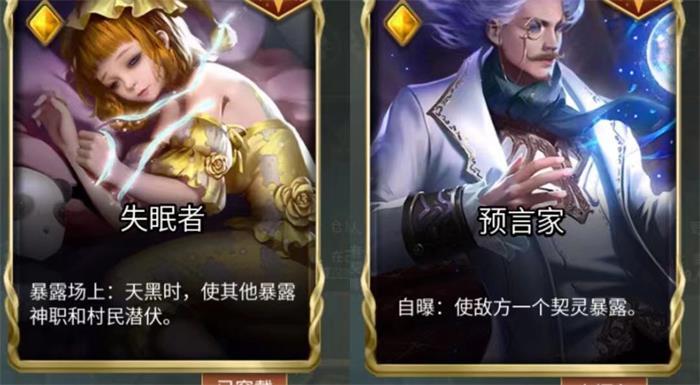 王国势力的传说神牌中,失眠者和预言家是我们的推荐选择。当失眠者暴露在场上时,其他已暴露的神职与村民会在夜晚进入潜伏状态,从而避免被杀。而预言家能够使敌方的一个契灵暴露。失眠者可以有效保护我方的关键卡牌在夜间不被攻击,预言家则有助于我们更快地找出敌方的狼人。