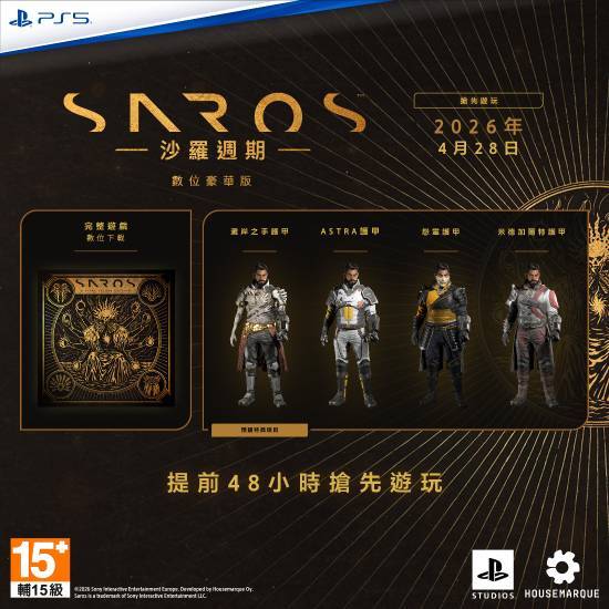 《沙罗周期》已在PS Store开启预购,游戏将于2026年4月30日正式上线。其中标准版定价568HKD,豪华版为628HKD。玩家只要预购任一版本,就能领取“海岸之手”铠甲作为奖励。