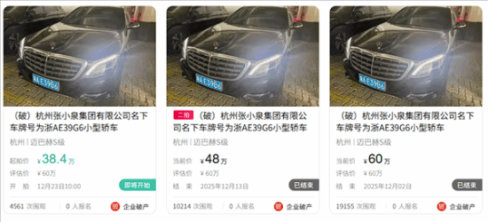 12月19日消息,近日阿里资产平台信息显示,有一个标的名称为“(破)杭州张小泉集团有限公司名下车牌号为浙AE39G6的小型轿车”,该标的将在2025年12月23日10:00至2025年12月24日10:00期间,于阿里资产平台再次进行拍卖。