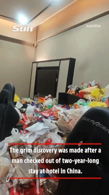 当那位男士完成退房手续后,酒店工作人员推开客房门,映入眼帘的场景令人心惊——房间里堆积着两年间攒下的外卖餐盒、食品包装袋以及形形色色的生活垃圾,有些地方的垃圾堆积厚度差不多达到1米,屋内的家具几乎都被掩埋在垃圾之下。
