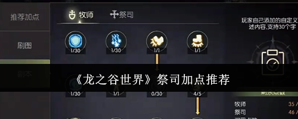 《龙之谷世界》祭司技能加点建议