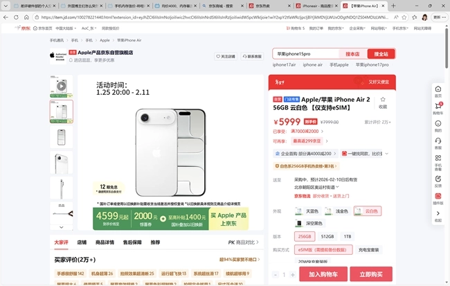 iPhoneAir官方降价幅度超过30%后迅速售罄,部分用户的订单发货时间已延迟到2月